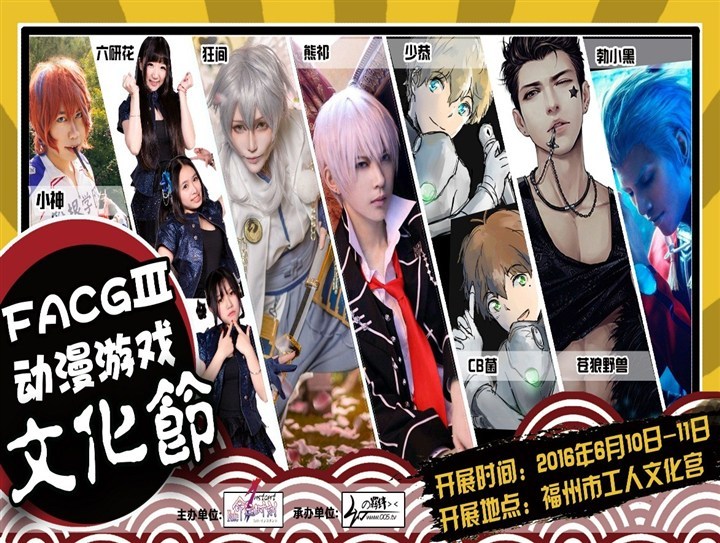 “2016FACGIII动漫游戏文化节欢乐祭”是福州羁绊网络有限公司继“FACG漫展和FACGII漫展”后的又一次精心筹备制作,力图打破次元壁的暑期盛宴!